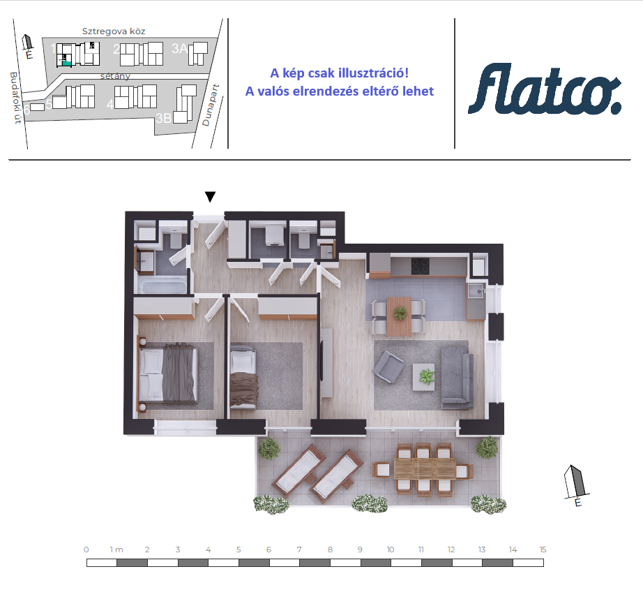 A képeken az egyik mintalakás látható, nem a bérlet tárgyát képező konkrét lakás!