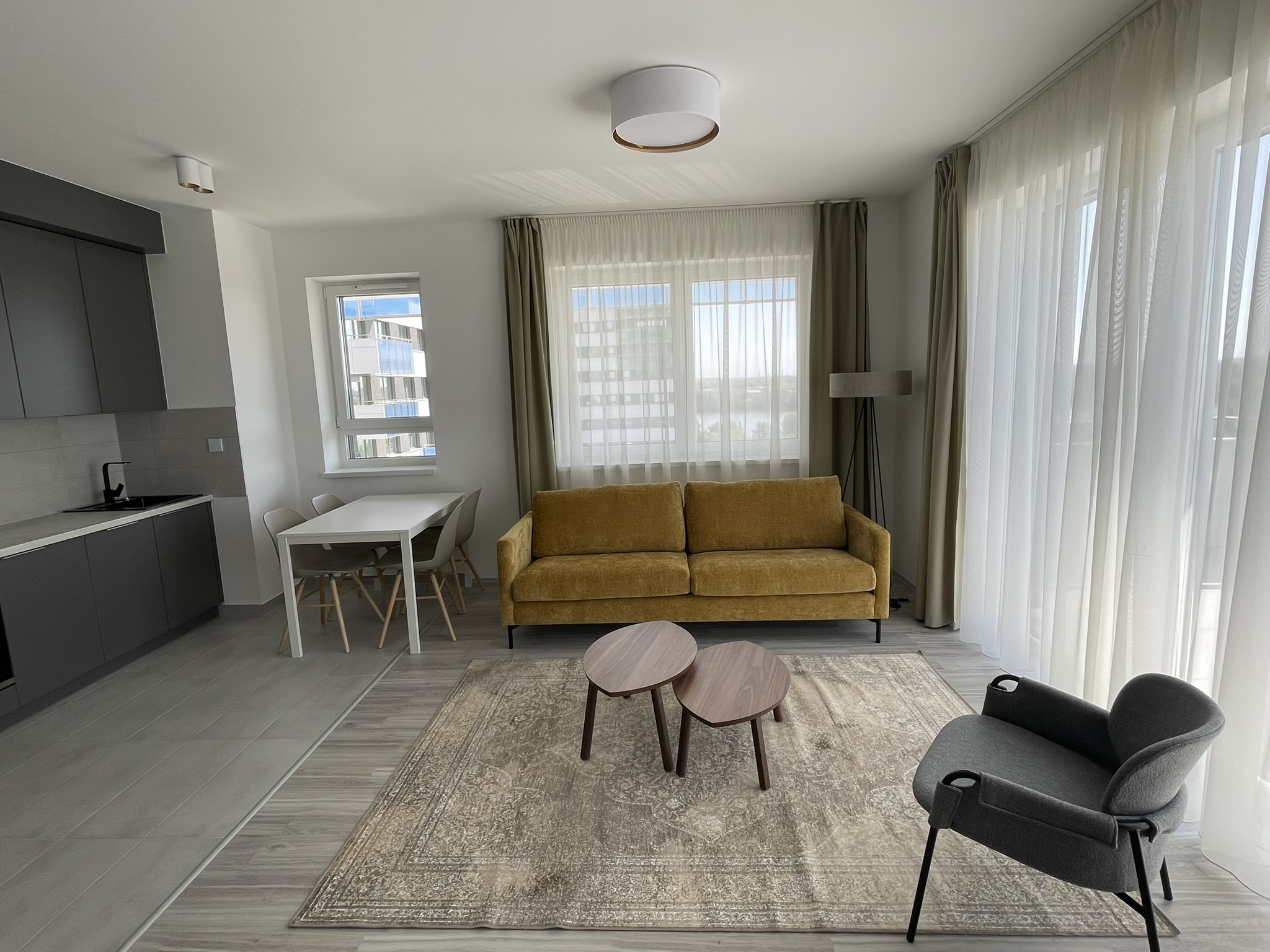 Teljesen berendezett, gépesített, erkélyes, nappali + kéthálós lakás várja új bérlőjét. Modern mennyezeti hűtés-fűtés, 24 órás portaszolgálat, edzőterem és szauna biztosítja a kényelmet.